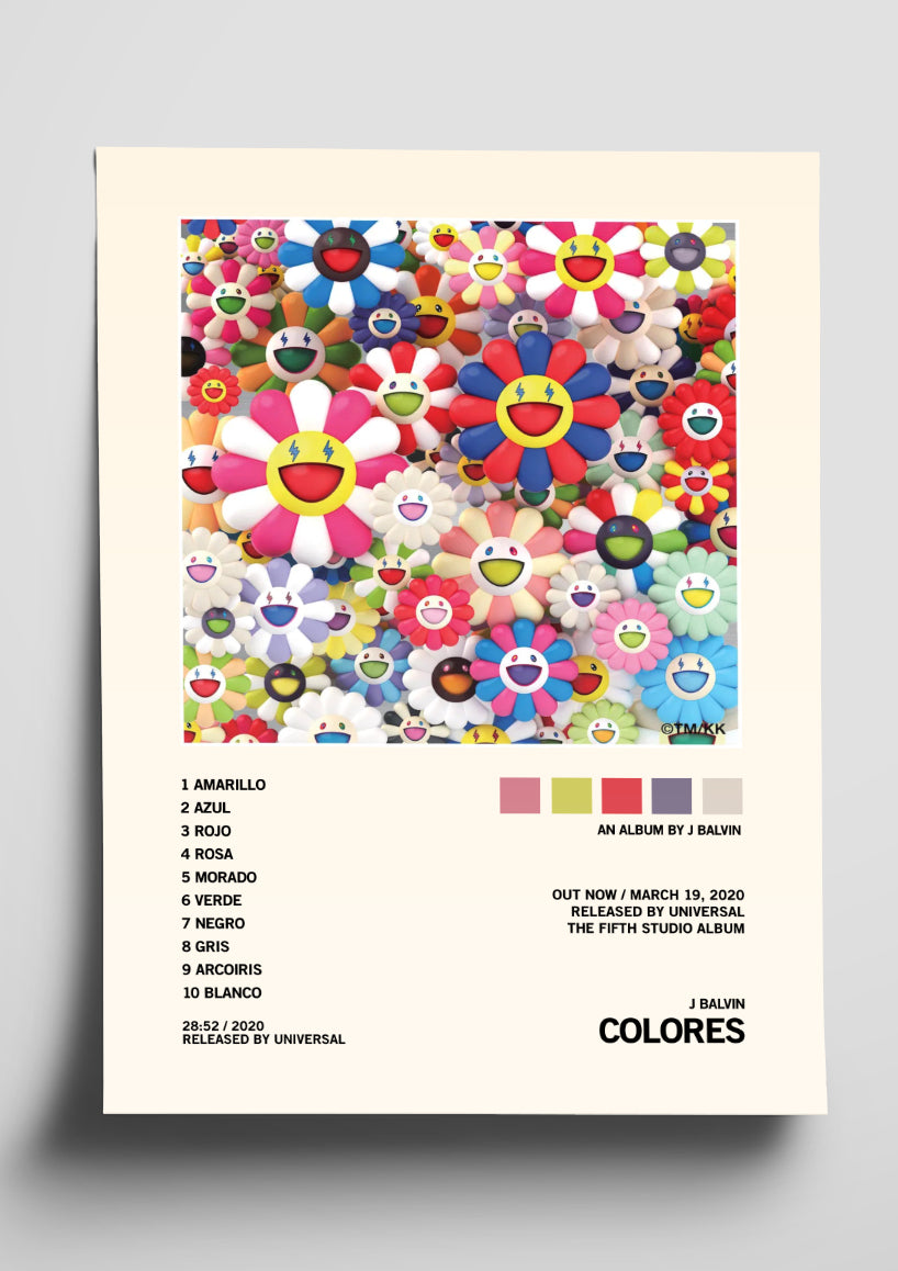 J Balvin 'COLORES' Album Art Tracklist Poster