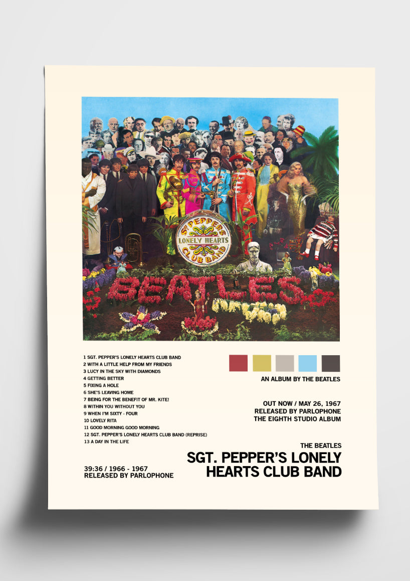 The Beatles 'Sgt. Pepper's Lonely Hearts Club Band' Album Art Tracklist Poster